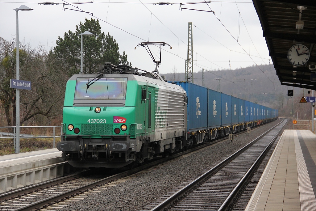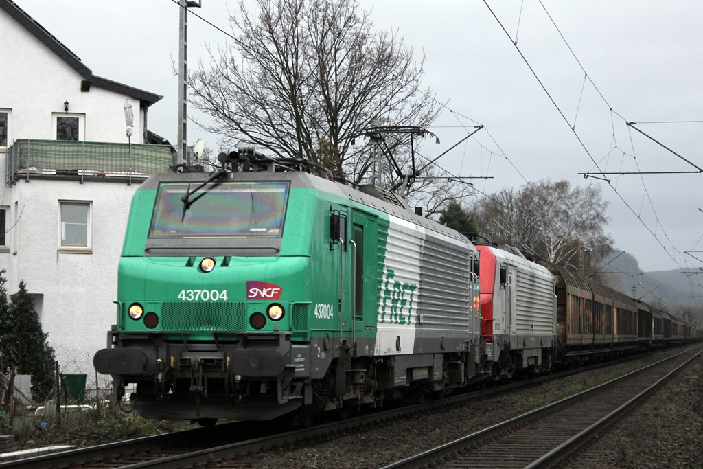 SNCF 437004 mit CB Rail E37 520 am Papierzug am 12.1.2012 in Beuel