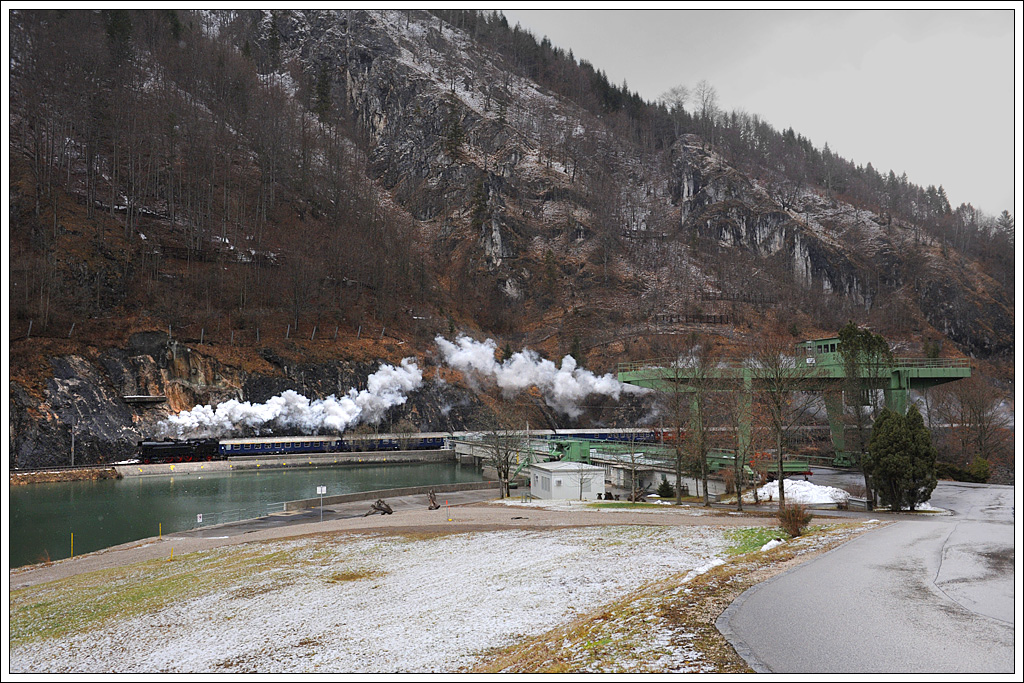 78 618 der ÖGEG mit dem IGE Sonderzug SR 14281, von Salzburg via Gesäuse, Selzthal und die Phyrnbahn retour nach Salzburg am 6.1.2012 als Sdz SR 14281 beim Ennskraftwerk in Weyer aufgenommen.