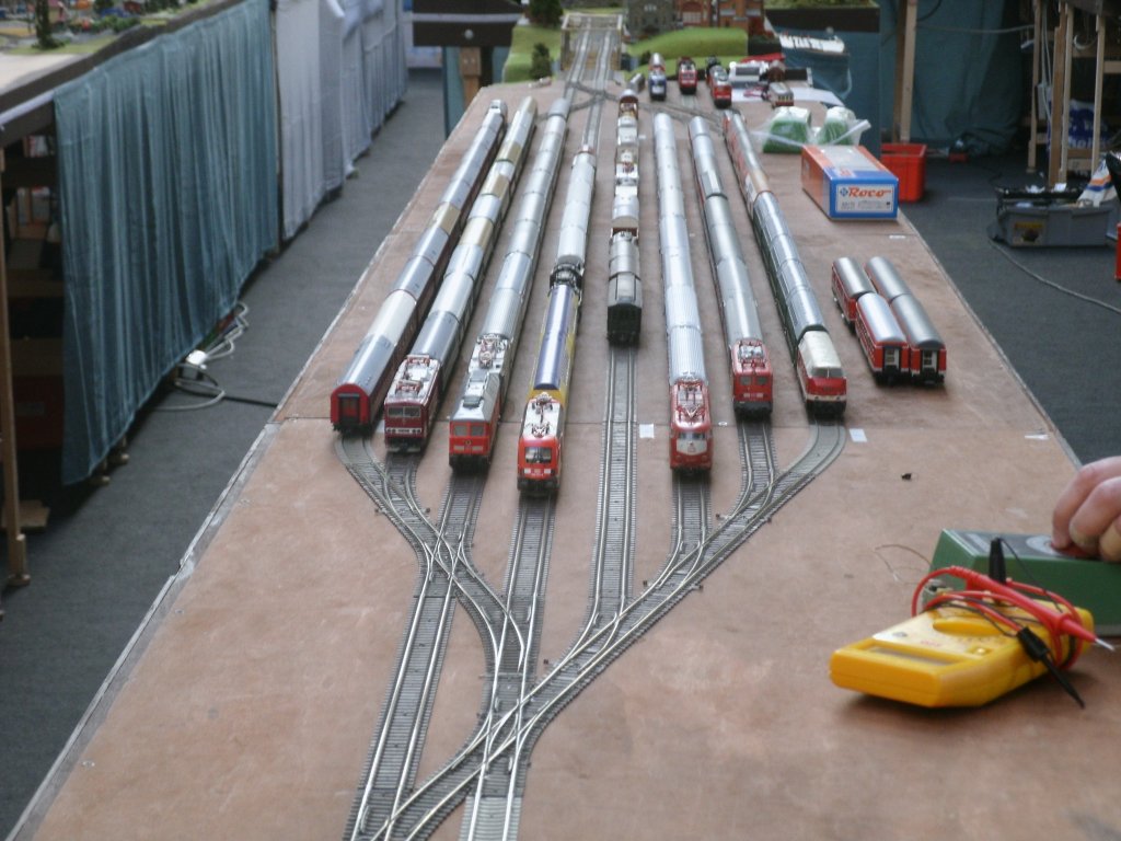 Alle Gleise waren,am 29.Oktober 2011 im Berliner Postbahnhof,im Schattenbahnhof auf einer H0-Anlage besetzt.