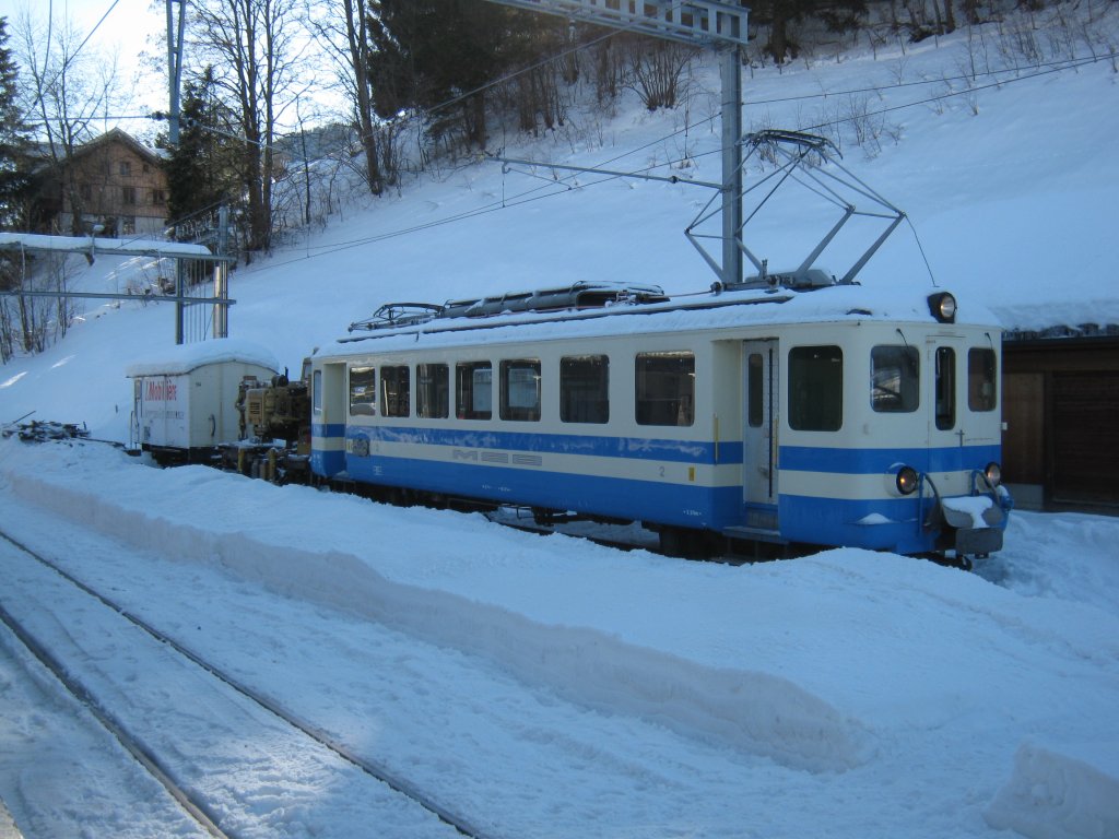 Der Bahndiensttriebwagen Be 4/4 1003 abgestellt in Gstaad, 12.01.2012.