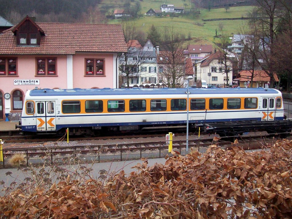 Der VT 125 der SWEG Ottenhöfen steht am Nachmittag des 23.12.11 am Bahnsteig zur Fahrt nach Achern bereit.