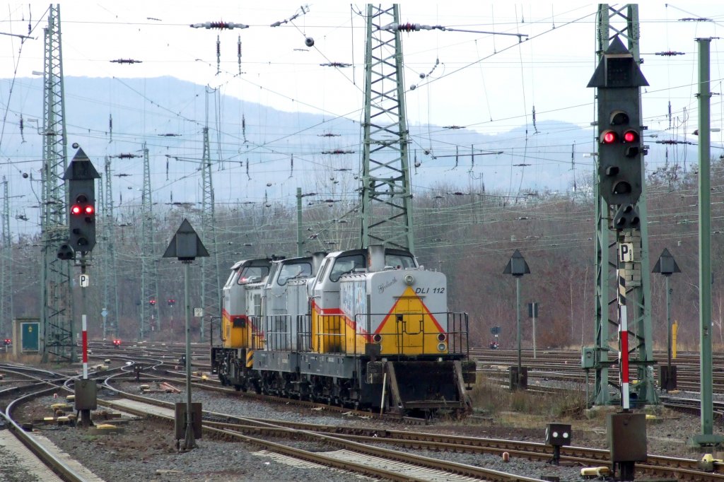 Die-Lei im Dreierpack, vorn die DLI 112, der Goliath (Kassel Hbf, am 11.01.2012).