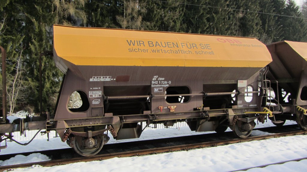 Ein ÖBB Infrastruktur Schotterwagen im Bahnhof Kitzbühel abgestellt am 26.12.2011