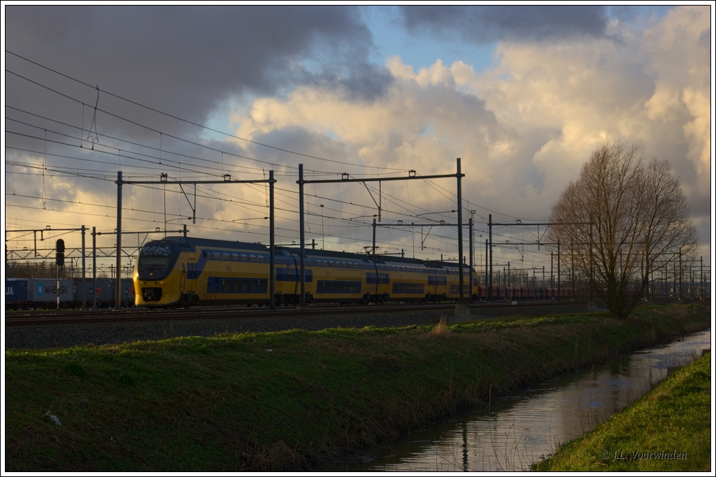 Ein VIRM-Triebzug fuhr am 2. Januar 2012 als IC2157 (Amsterdam-Vlissingen) beim Rangierbahnhof Kijfhoek zwischen Rotterdam und Dordrecht.