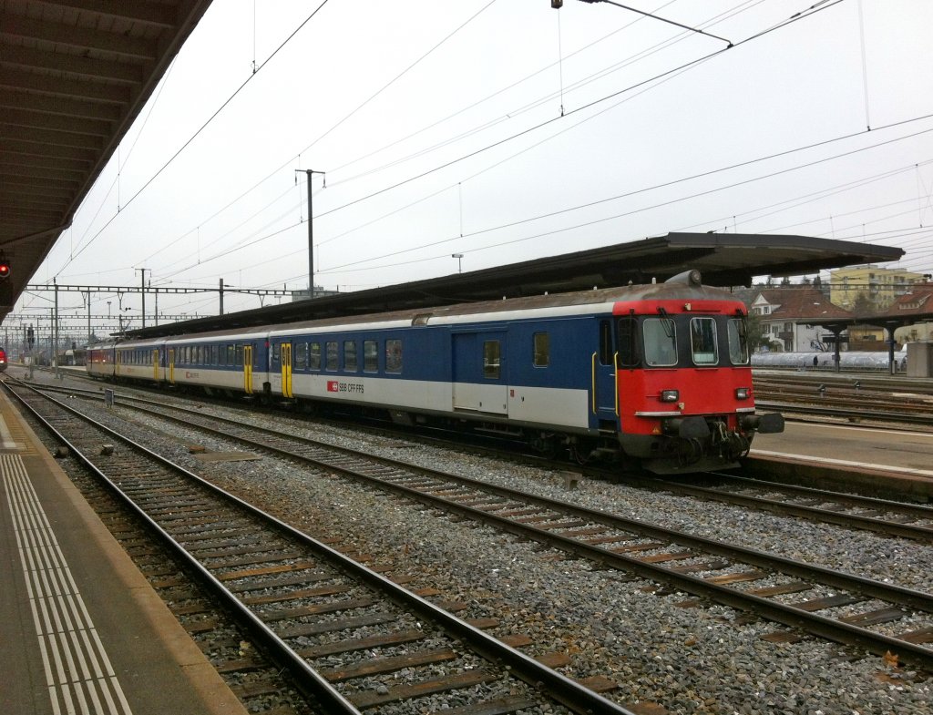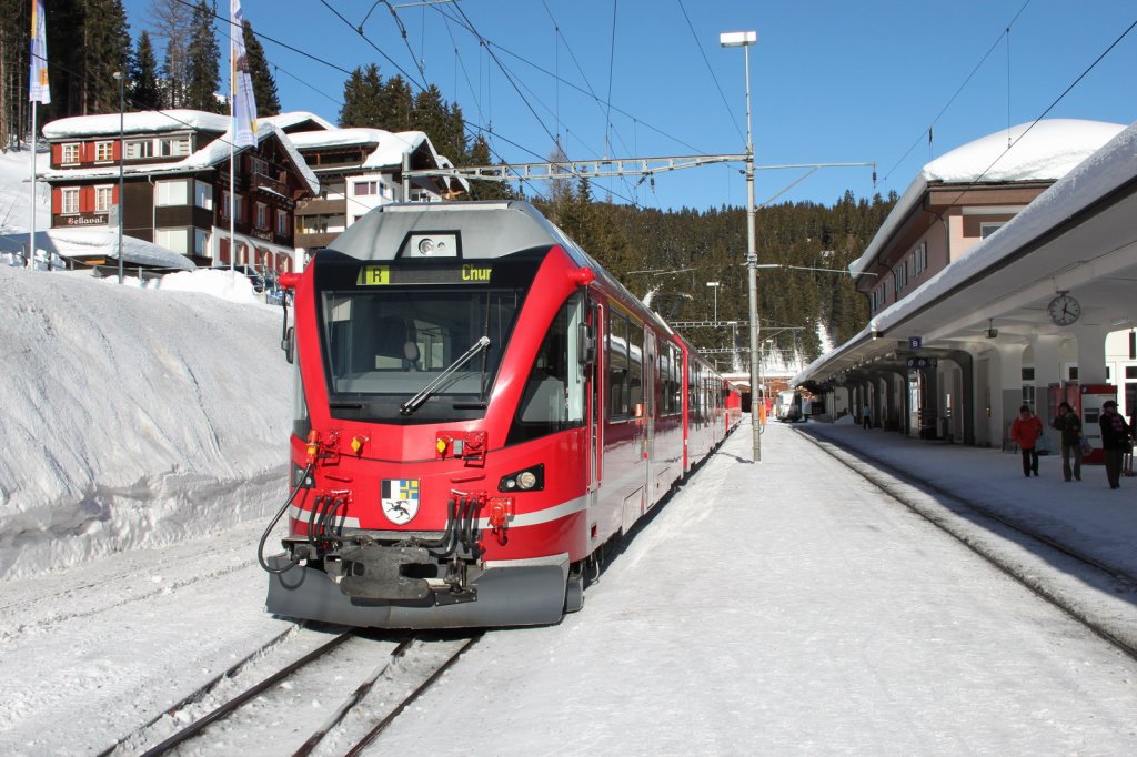 Regio nach Chur zur Abfahrt bereit,im Bahnhof Arosa.12.01.12