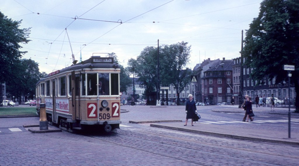 København / Kopenhagen Københavns Sporveje (KS) SL 2 (Tw 509 + Bw 15**) København K, Slotsholmen, Holmens Bro / Børsgade im Juni 1968. - Scan eines Diapositivs. Film: AGFA CT 18.