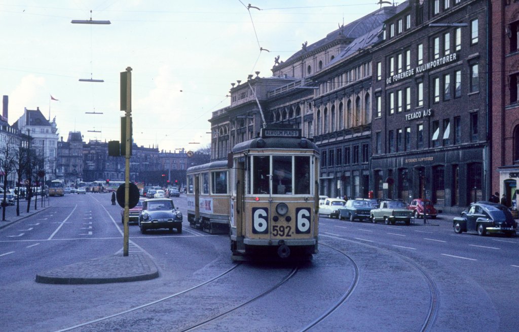 København / Kopenhagen Københavns Sporveje (KS) SL 6 (Tw 592 + Bw 15**) ) København K, Holmens Kanal / Holbergsgade im April 1969. - Scan eines Diapositivs. Film: AGFA CT 18.