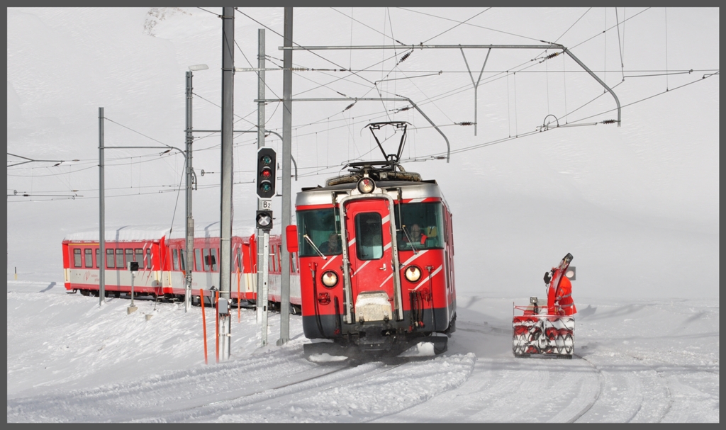 Das Gerät fürs Grobe, Schneepflug, HGm 4/4 61 und Schleuder Xrot...auf dem Oberalppass. (10.01.2012)