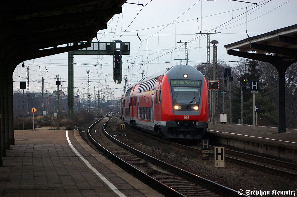 182 004-3 hatte am 07.01.2012 die Aufgabe den RE2 von Cottbus nach Wittenberge zu befördern. Er wird gleich seinen nächsten Halt Königs Wusterhausen erreichen.