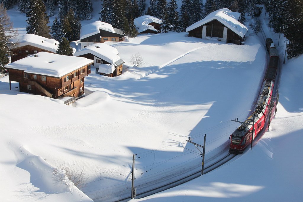 Regio nach Chur bei der Ausfahrt aus dem Arosatunnel.12.01.12