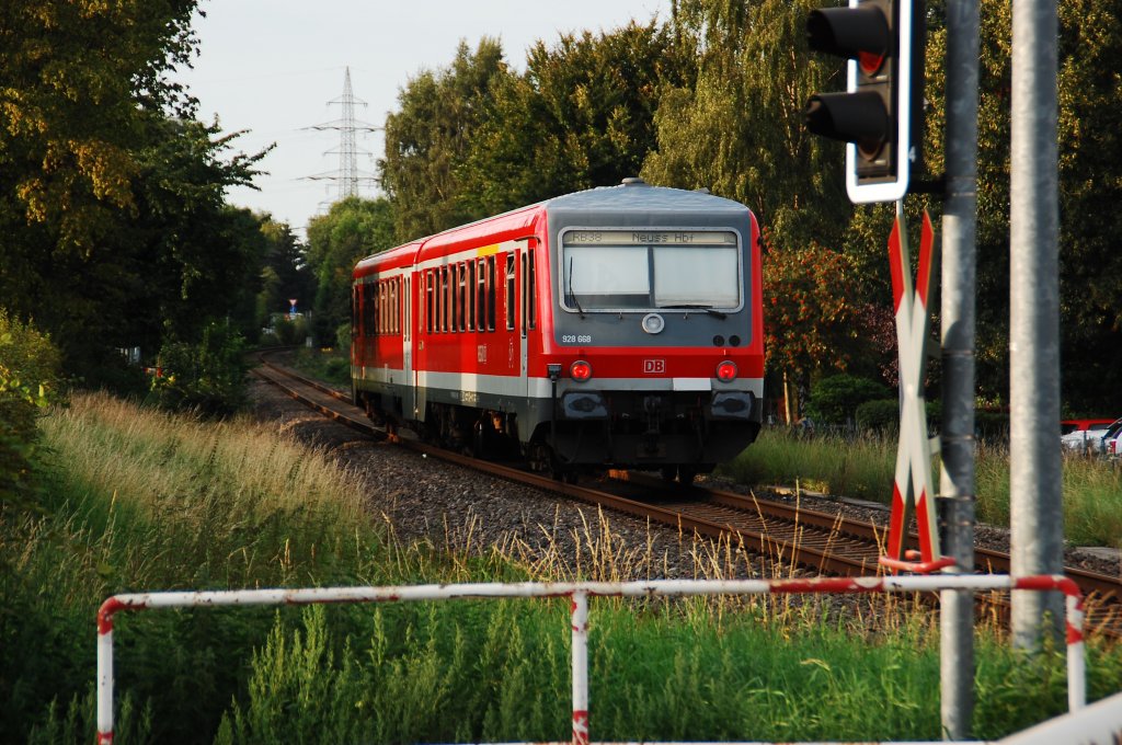 So eben ist die RB 38, der 628/928 668 aus dem Bf Gustorf ausgefahren und strebt nun Grevenbroich an. 21. August 2011