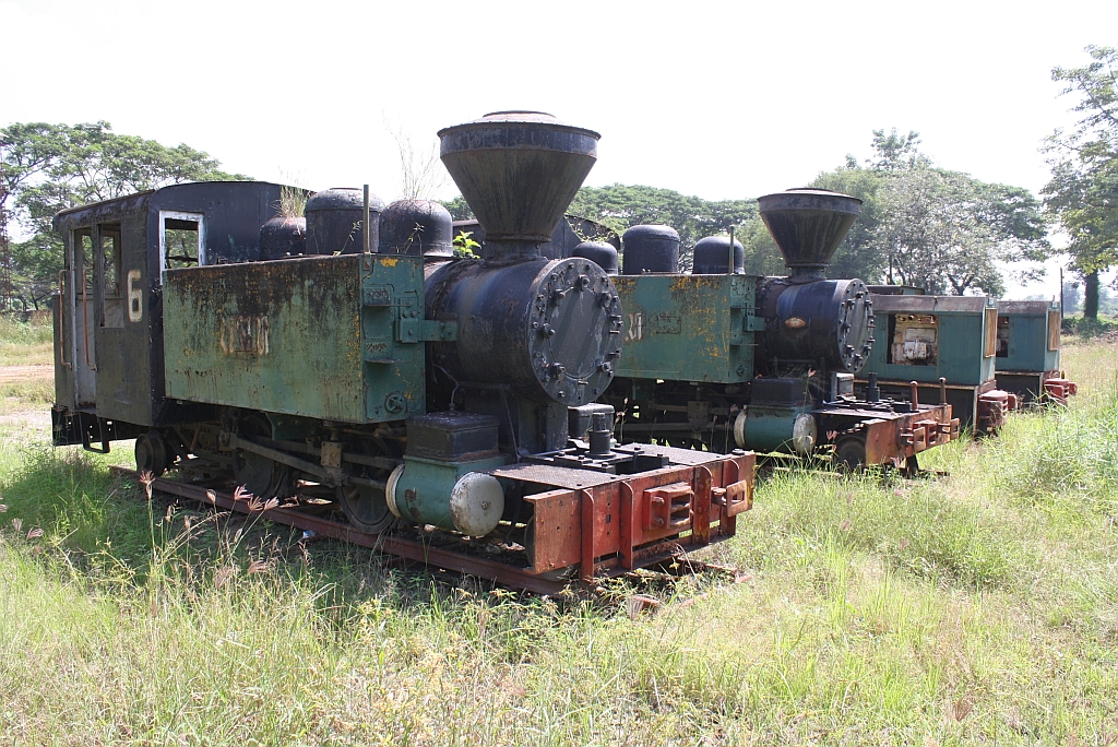 TPI-Ko Kha No.6 (1'B1't-h2, 750mm, Vulcan Iron Works - USA, Bauj. 1947, Fabr.Nr. 4655) vor den Lok's TPI-Ko Kha No.8, 10 und 11 am 25.Oktober 2011 in Ko Kha.