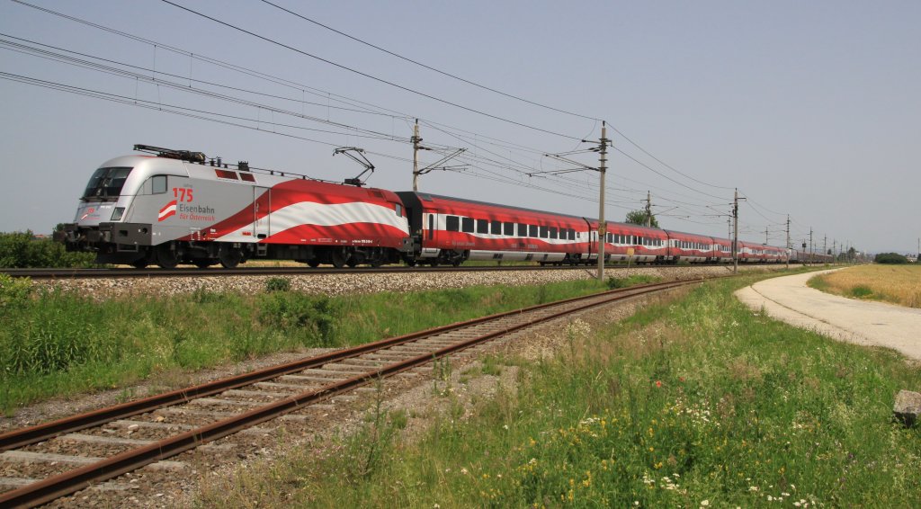 Der Zug mit 2067.04 hat soeben die Stadtgrenze von Korneuburg passiert (01.07.2012)