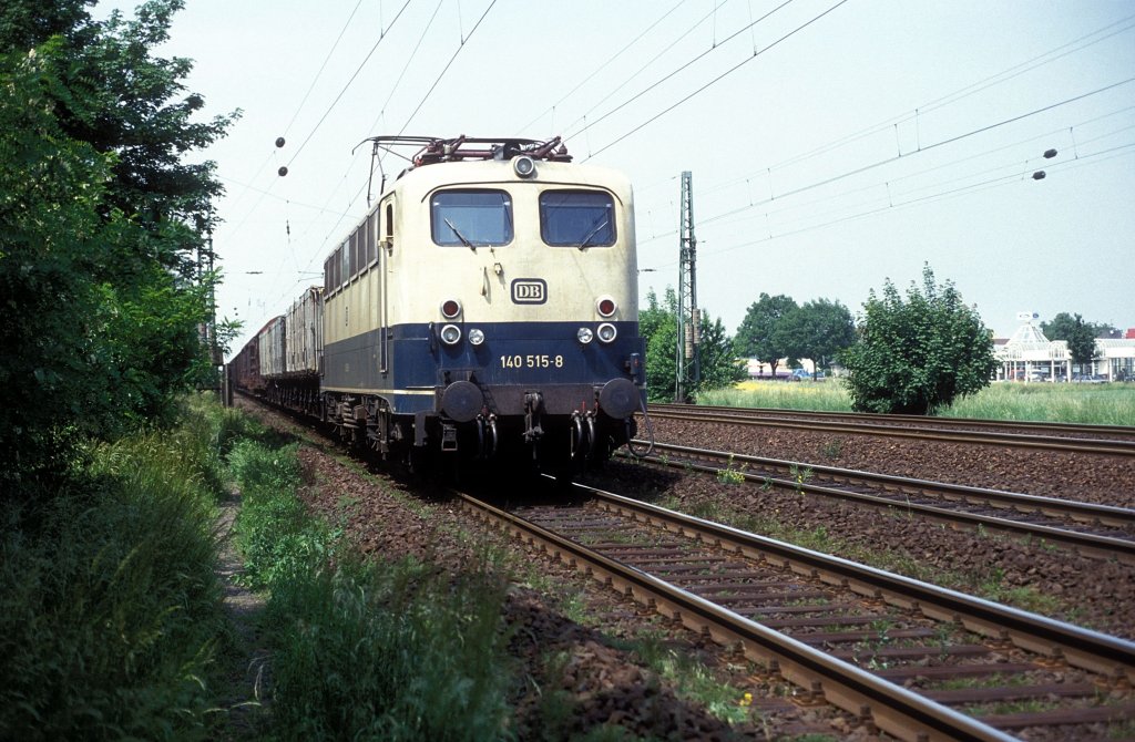 140 680 am 26.4.12 mit einem Stahlzug bei der Durchfahrt durch Duisburg-Bissingheim.