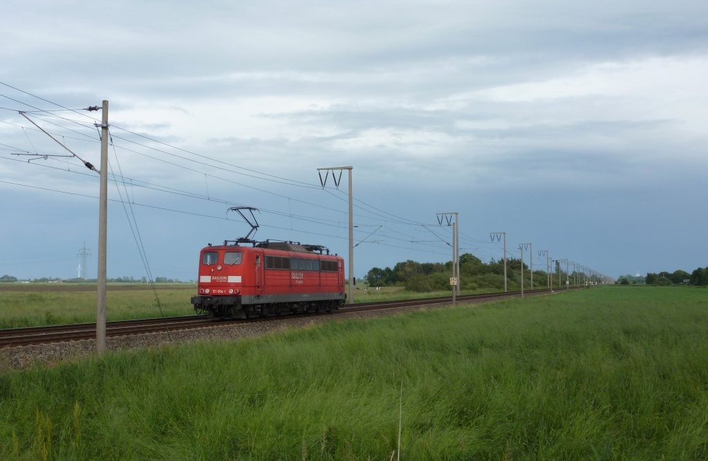 In schönem Licht kam dann die 145 028-7 mit einem Güterzug von Emden nach Osnabrück am 22.06.2012 bei Petkum vorbei.