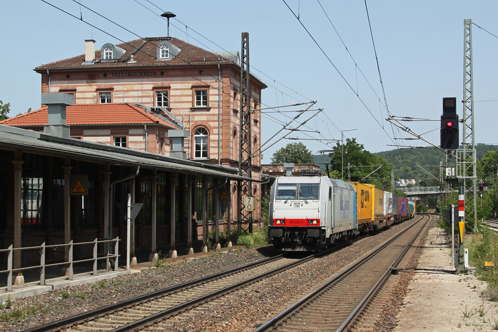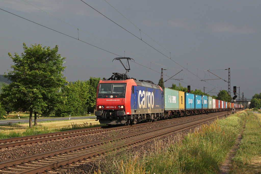 482 016 mit einem Containerzug am 30.06.2012 bei Thüngersheim.