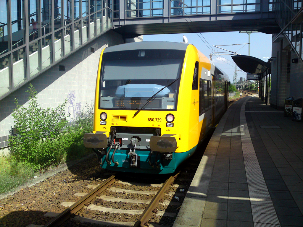 Triebwagen der VBG fahren seit kurzen auf den Strecken Gotha-Bad Langensalza und Erfurt-Kassel Wilhelmshöhe.Hier VT 55, 650 155-4, am 1.7.12 in Bad Langensalza