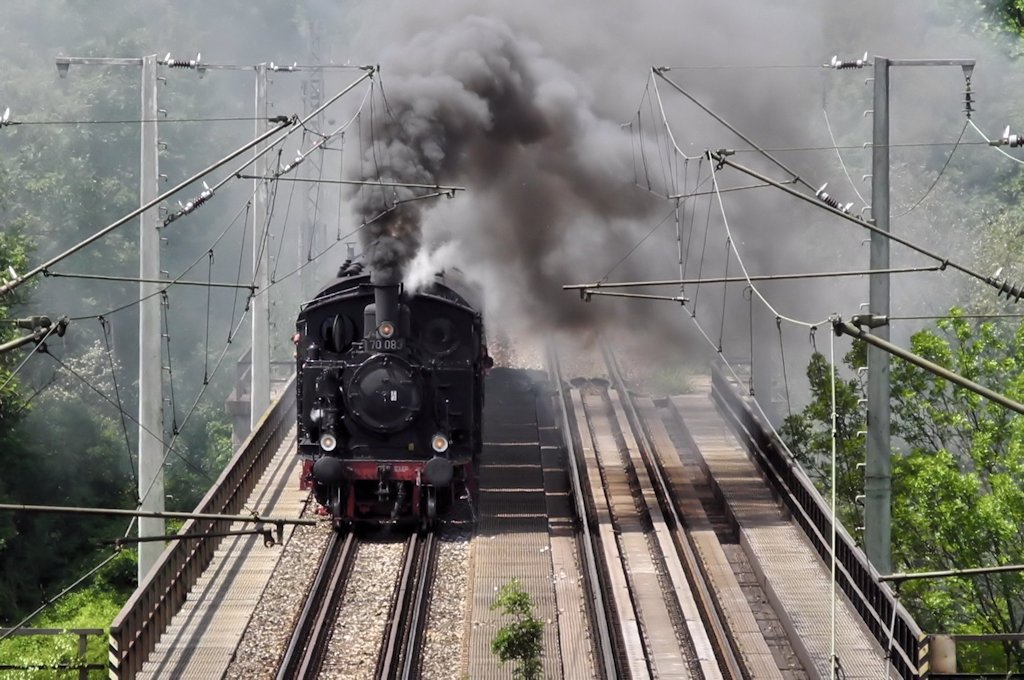 Zug 651 mit Lok 63 auf Bergfahrt an der Szepfeggflanke. (27.06.2012)