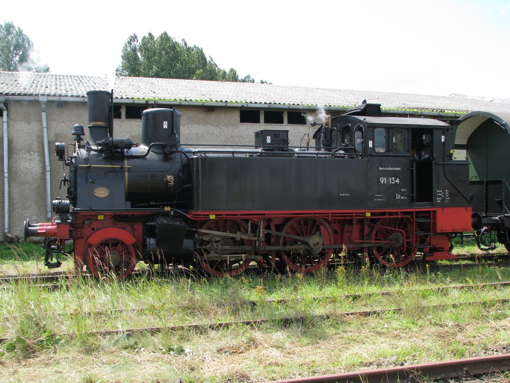 91 134 am 26.07.2009 im Endbahnhof von Rehna an der Strecke Schwerin HBF - Rehna