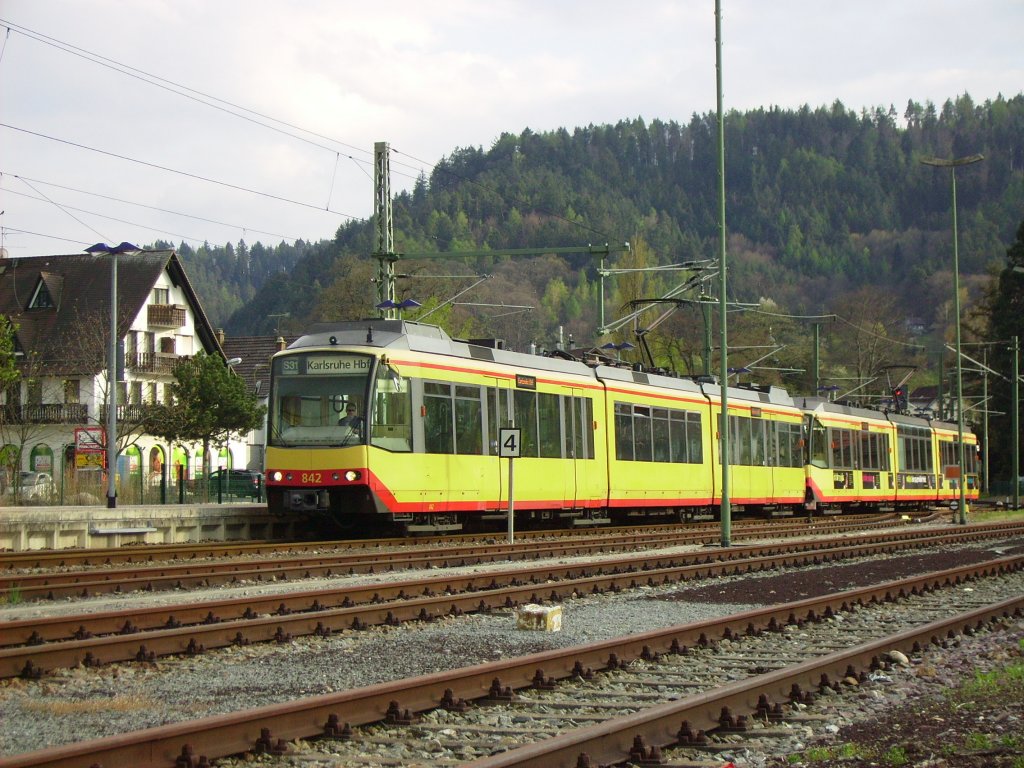 Am 13.04.2012 stehen Wagen 842 und 919 als S 85099 im Bahnhof Gernsbach und warten auf den Gegenzug S 85084.