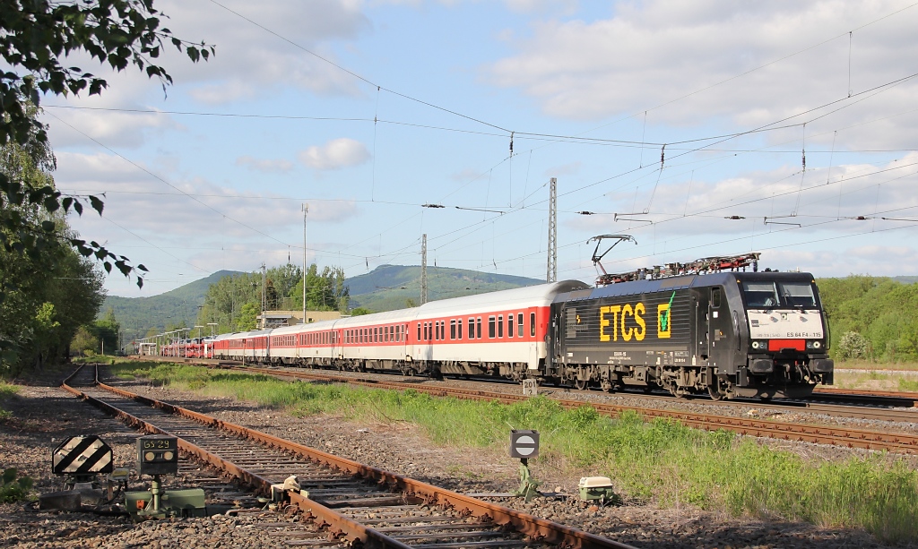 Am 13.05.2012 bespannte die 189 115 (ES 64 F4-115) einen AZ in Richtung Süden. Aufgenommen in Eschwege West.