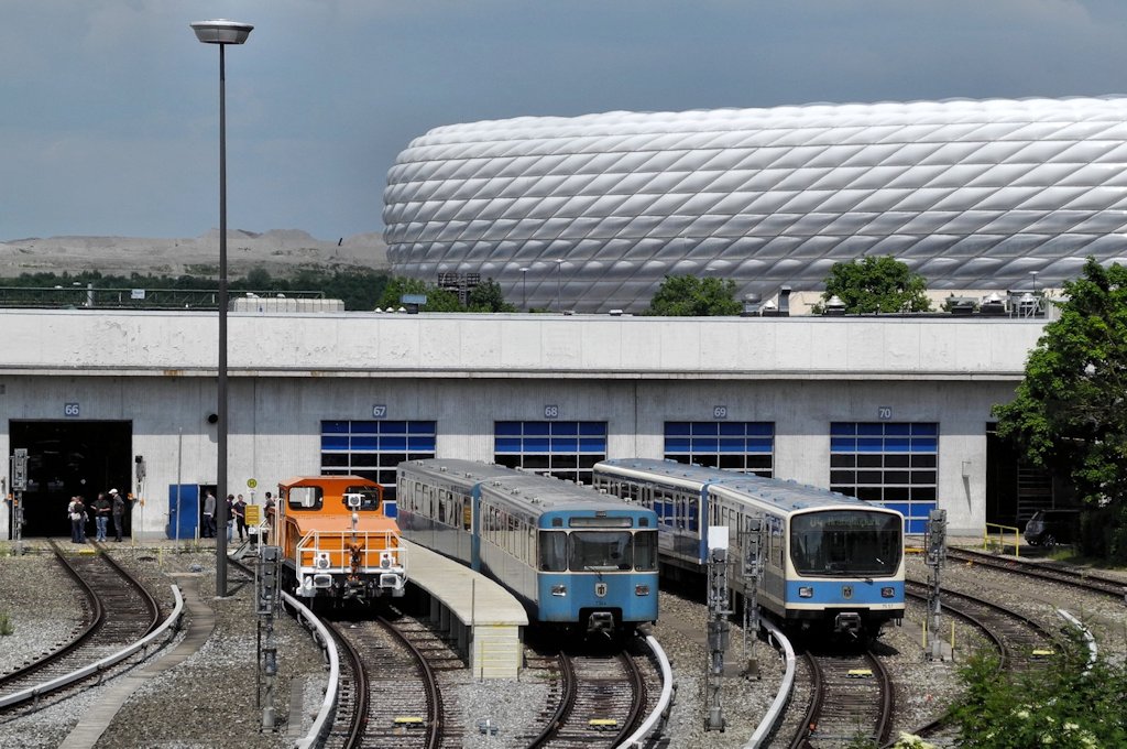 Am 28.05.12 steht die Akkuschlepplok mit Wagen 344 und 557 im Betriebshof Fröttmaning