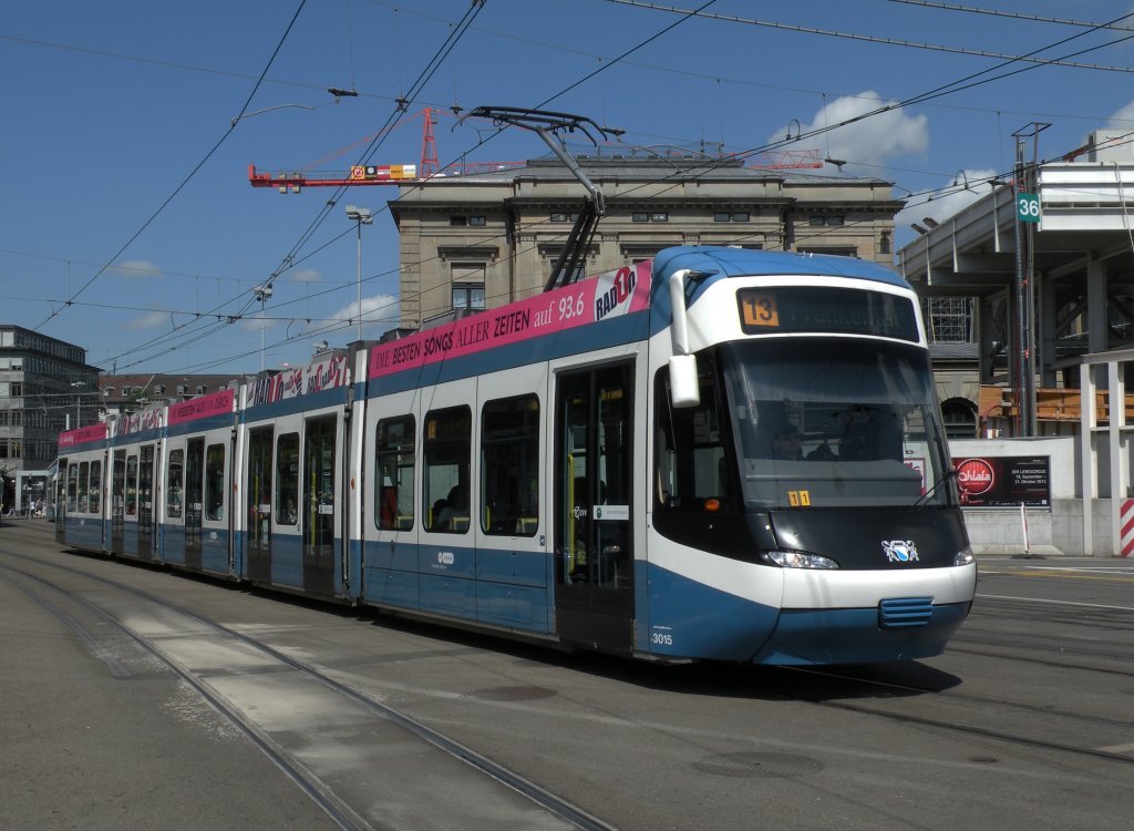 Be 5/6 Cobra mit der Betriebsnummer 3015 auf der Linie 13 am Hauptbahnhof Zürich. Die Aufnahme stammt vom 23.06.2012.