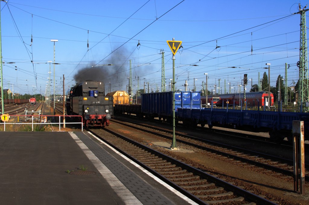 23 1019 des Lausitzer Dampflokclubs vor einem Sonderzug des Vereins mit Fahrziel Bad Schandau am Morgen des 23.06.2012 auf Gleis 1 in Cottbus Hbf.
