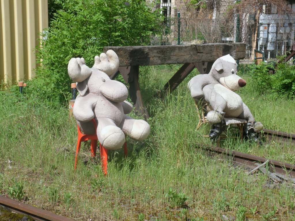 Da haben sich Zwei am 12.Mai 2012 am Prellbock in Berlin Lichtenberg bequem gemacht,