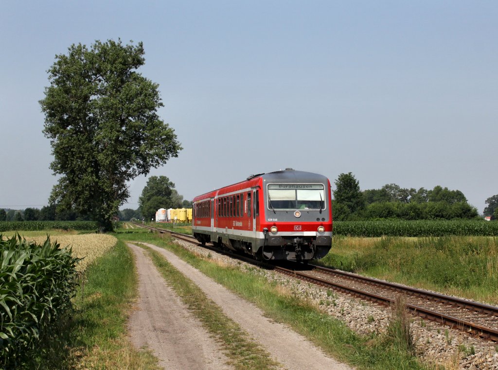 Der 628 646 als RB nach Burghausen am 30.06.2012 unterwegs bei Altötting.
