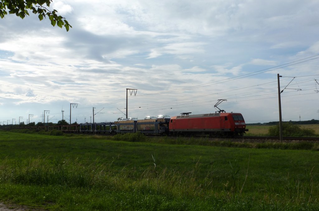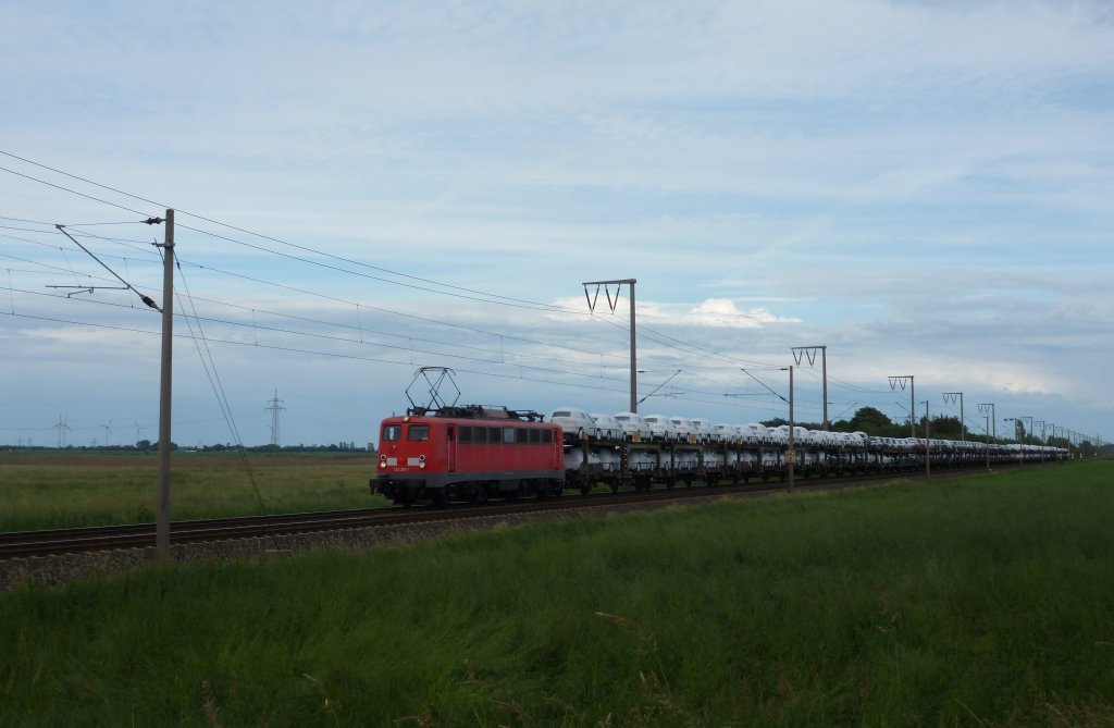 Die 139 285-1 fuhr am 22.06.2012 mit einem Autozug aus dem Osten nach Emden, hier bei Petkum.