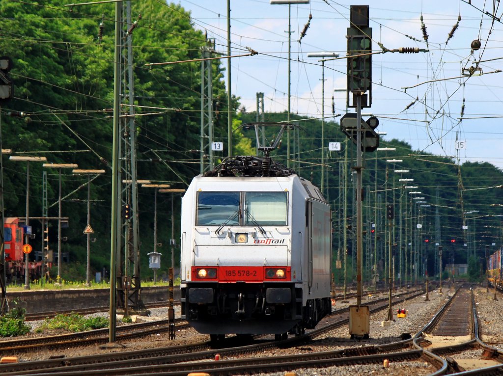 Die auffällig saubere 185 578-2 "Christine" von Crossrail rangiert am 01.07.2012 in Aachen West.