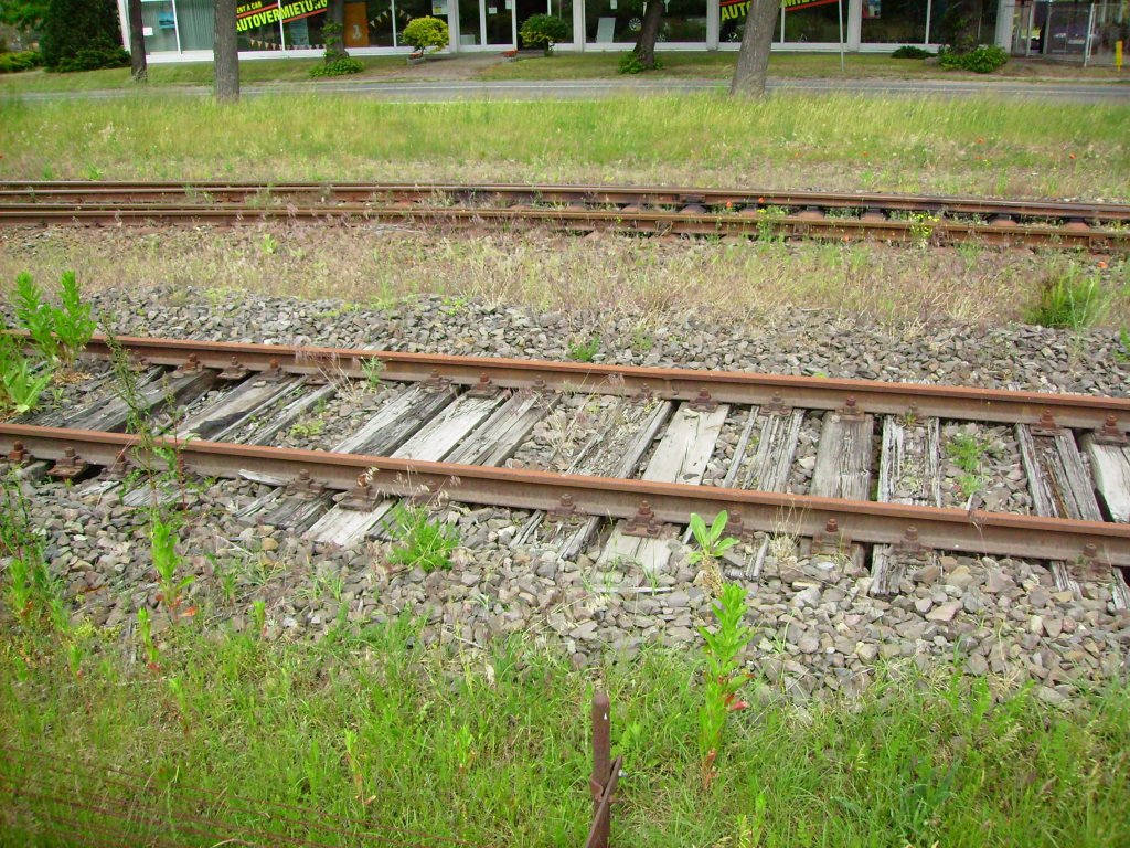 Die ausgebesserte Schwelle der ausgebesserten Schwelle war am 04.06.2012 auf einen Nebengleis des Bahnhofs Rheinsberg (Mark) zu entdecken.