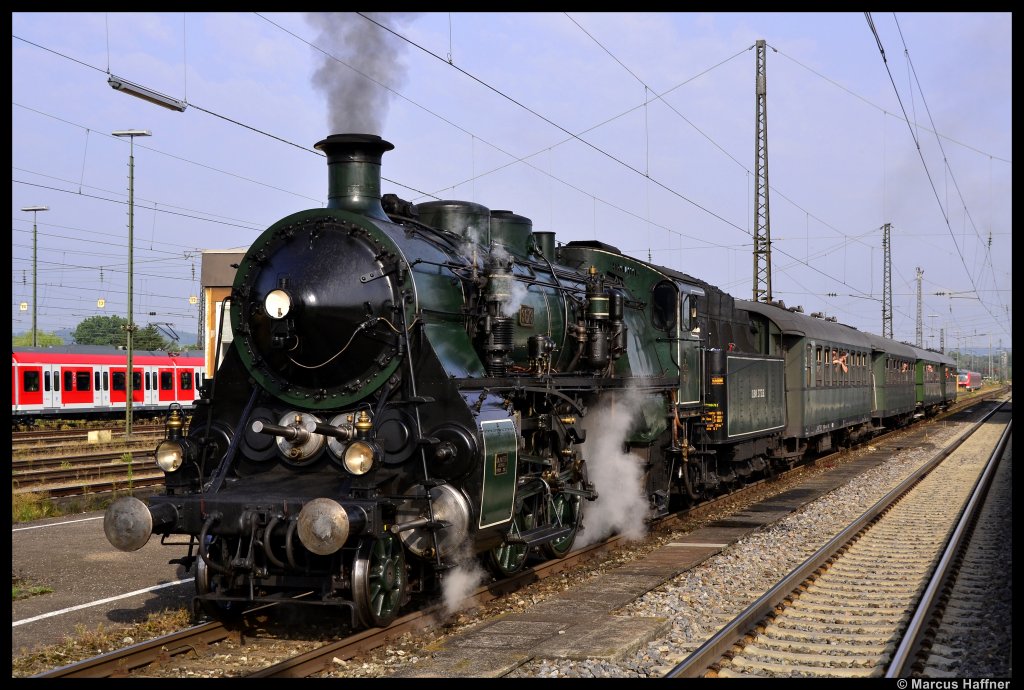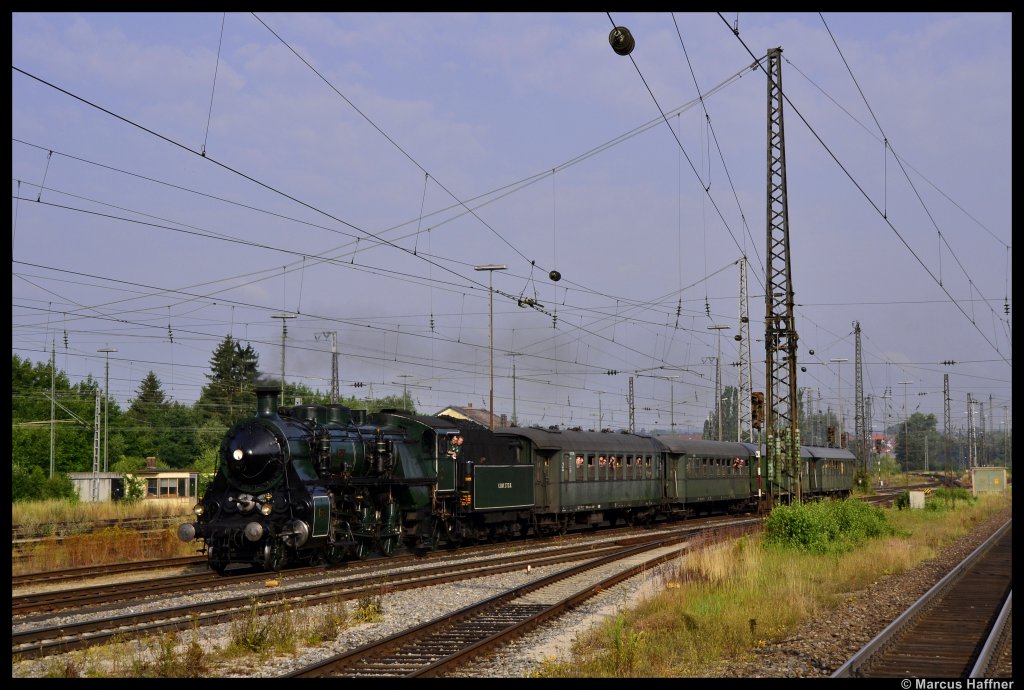 Die bayrische S 3/6 3673 (18 478) steht im Bahnhof Donauwörth und wartet bis sie an den Zug der Fränkischen Museums-Eisenbahn rangieren darf. Danach geht es weiter durchs Allgäu nach Lindau an den Bodensee. In Buchlohe bekommt der Zug noch Verstärkung durch 212 284-4 mit ihren Sonderzug aus München... Das Bild entstand am 30. Juni 2012