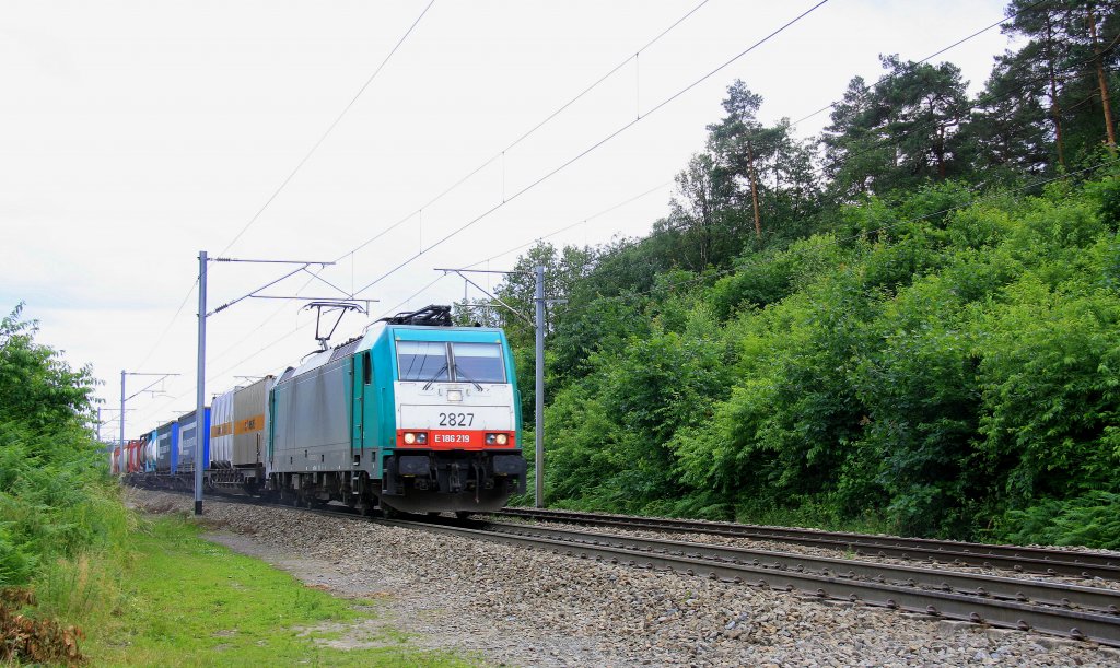 Die Cobra 2827 kommt mit einem Containerzug aus Richtung Montzen(B) und fährt Aachen-West.