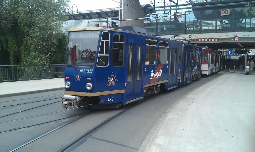 Eine historische Straßenbahn am 07.06.2012 in der Nähe vom Erfurter Hbf.