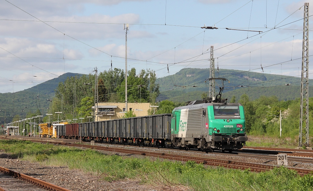 Mal was anderes: 437 029 mal nicht mit der "blauen Wand" sondern mit Eoas-Wagen in Fahrdichtung Süden. Aufgenommen am 13.05.2012 in Eschwege West.