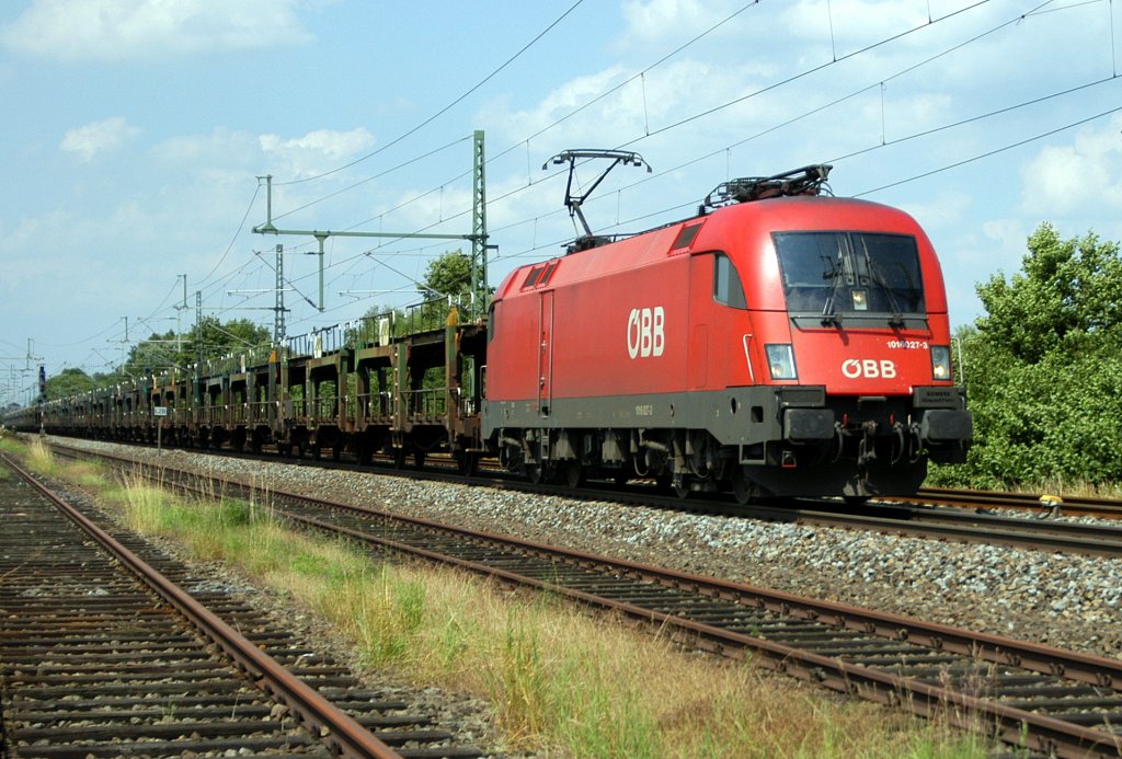 ÖBB 1016 027 mit einem leeren Autotransportzug in Richtung Osnabrück (Diepholz, 30.06.12).