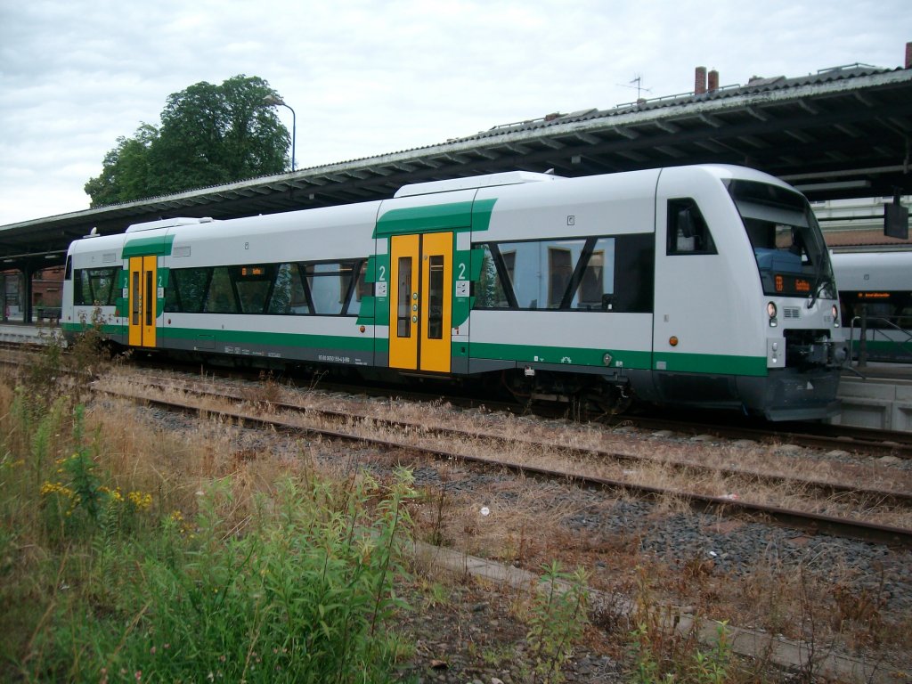 Am 01.04.2209 stand Talent 0007 der OLA Neubrandenburg im Bahnhof von Gadebusch zur Abfahrt nach Parchim bereit .
