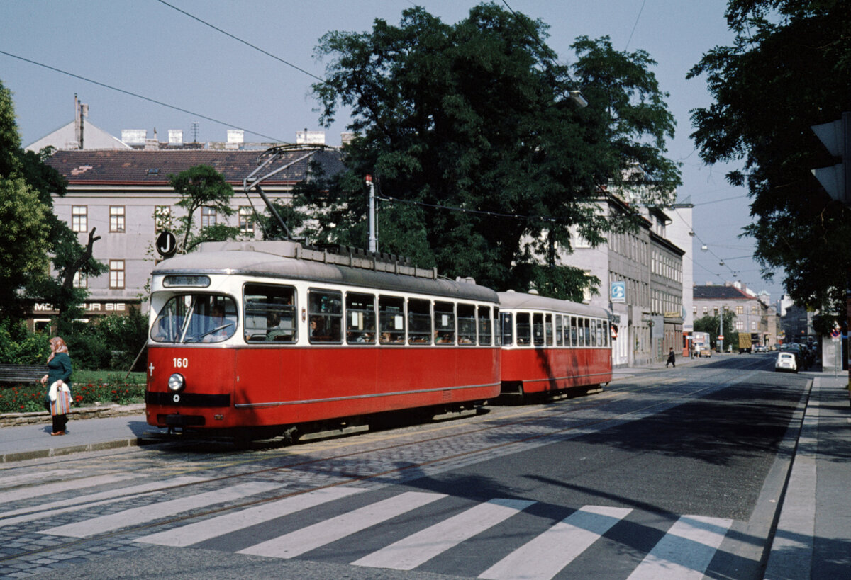 Wien Wiener Linien SL J (E1 4544 (Bombardier-Rotax 1975)) XVI, Ottakring, Johann-Nepomuk-Berger-Platz am 19. März 2000. - Scan eines Diapositivs. Film: Kodak Ektachrome ED 3. Kamera: Leica CL.