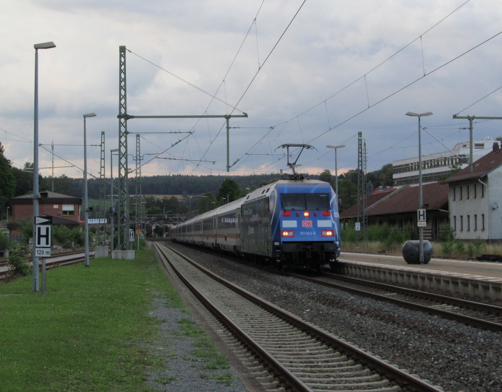 101 042-0 "Ecophant" zieht am 11. Juli 2012 den IC 2209 durch Kronach.