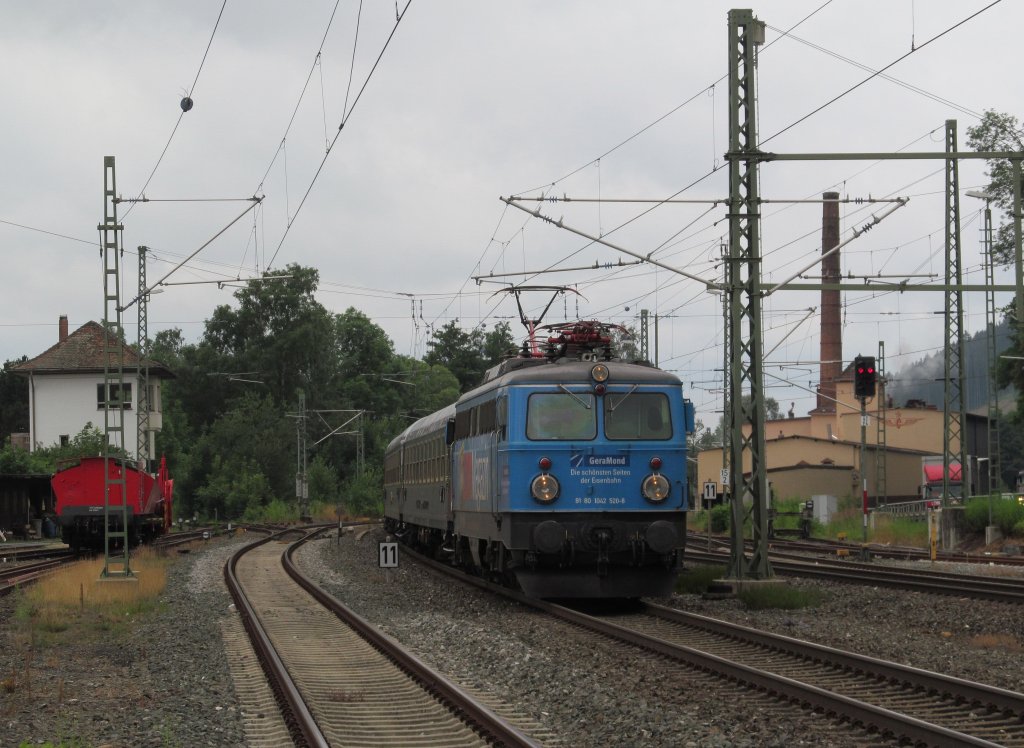 1042 520-8 zieht am 11. Juli 2012 den Classic Courier auf der Fahrt von München nach Weimar durch Kronach.
