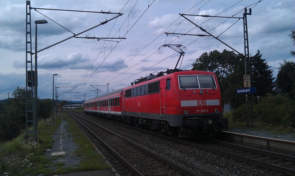 111 209-3 mit einer gedrehten RB am 11.07.2012 in Gundelsdorf.