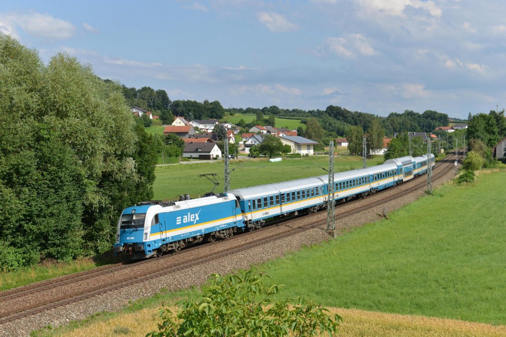 183 002 mit ALX 84112 von München Hbf nach Regensburg Hbf am 09.07.2012 unterwegs bei Ergoldsbach.