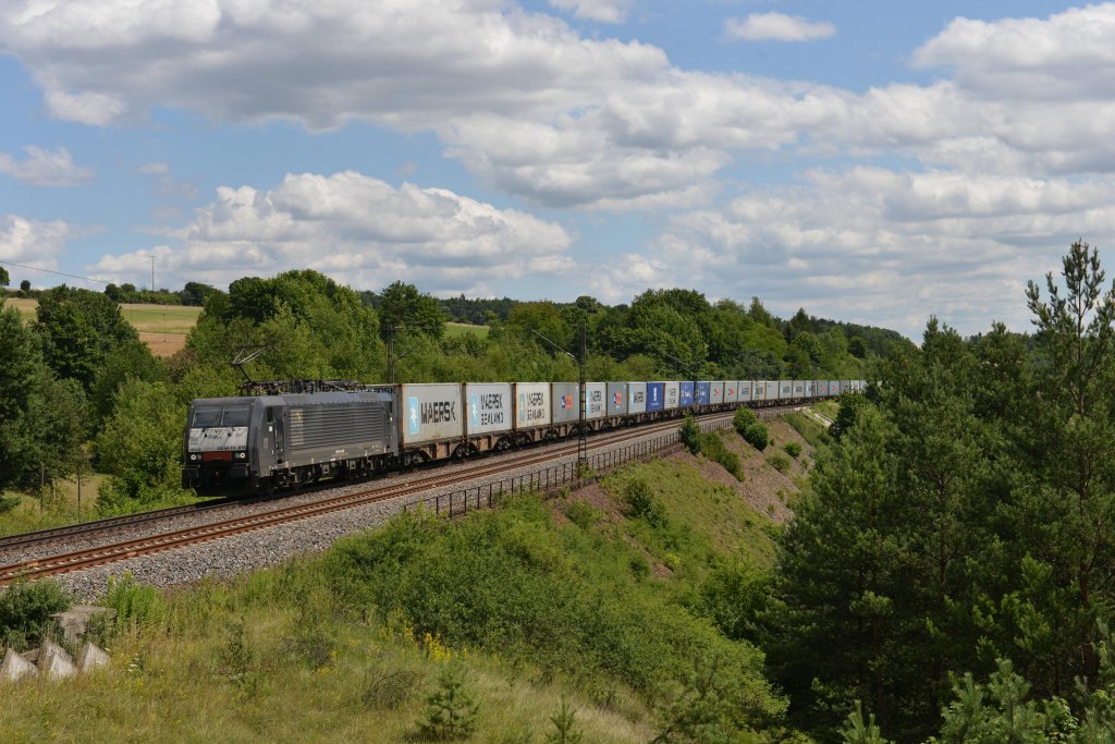 189 916 mit einen Boxxpress-Containerzug am 09.07.2012 unterwegs bei Laaber.