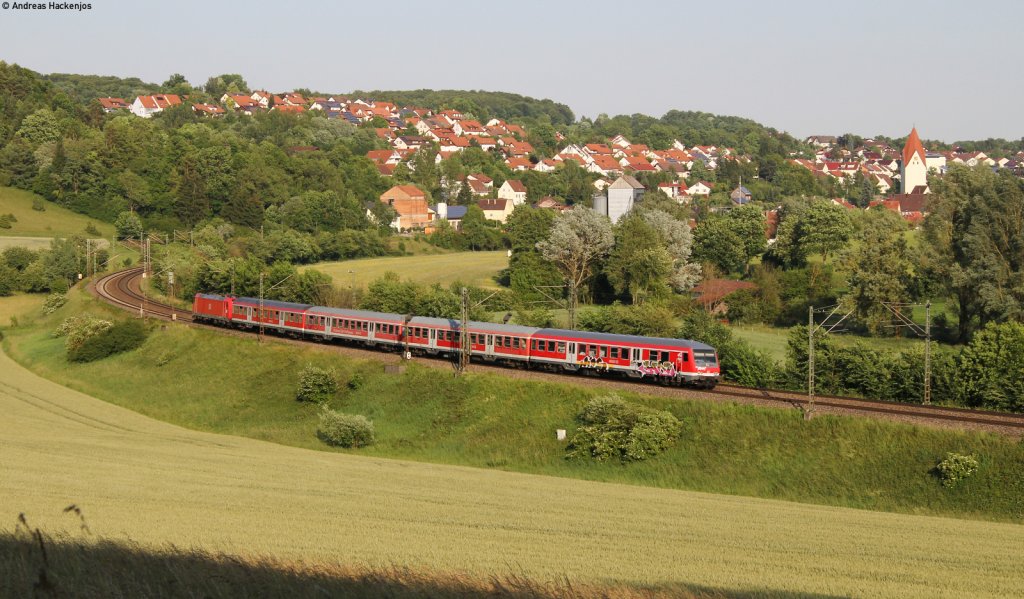 RB 19287 (Geislingen(Steige)-Ulm Hbf) mit Schublok 143 *** bei Lonsee 18.6.12