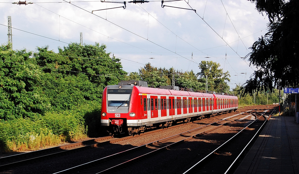S11 bei der Einfahrt in den Bahnhof Norf am späteren Abend des 1.7.2012