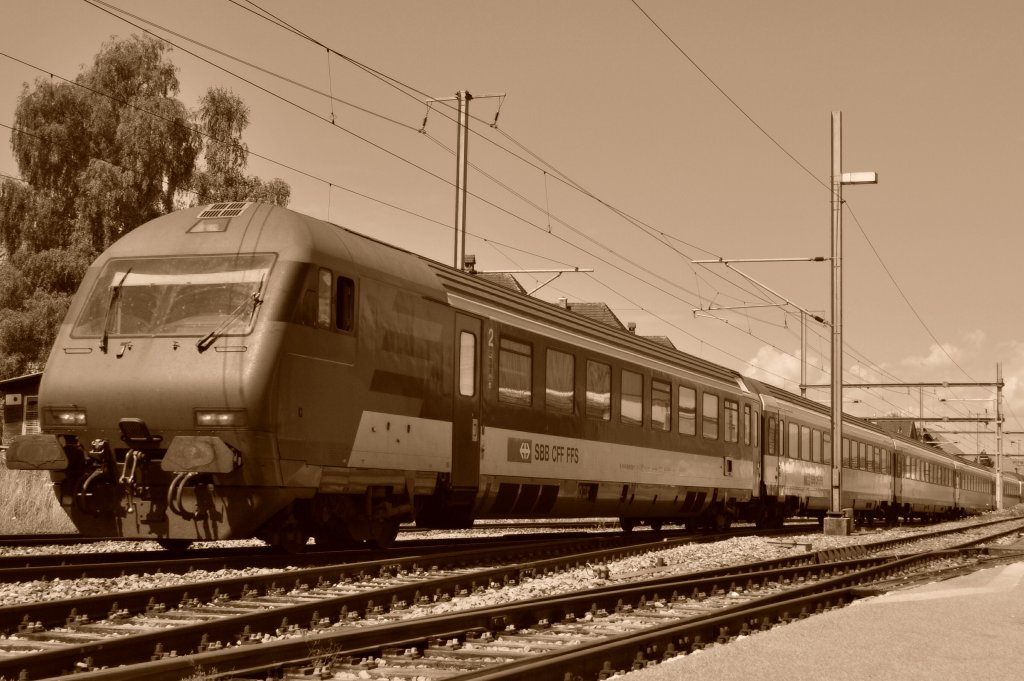 SBB Re 460 001-1 "Fiat Panda" mit RE Biel/Bienne-Bern bei der Durchfahrt in Schüpfen, Aufgenommen am 10.07.2012