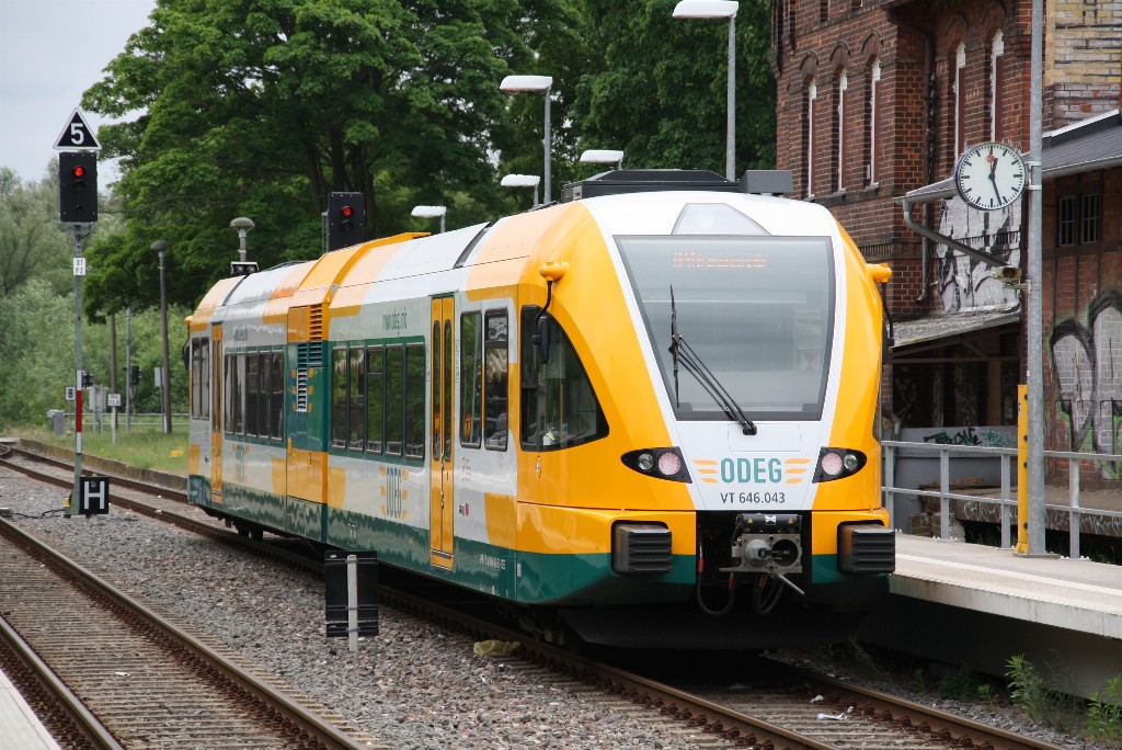 VT 646.043 (646 043-9) ODEG - Ostdeutsche Eisenbahn GmbH als OE51 (OE 79617) von Rathenow nach Brandenburg Altstadt in Premnitz. 11.07.2012