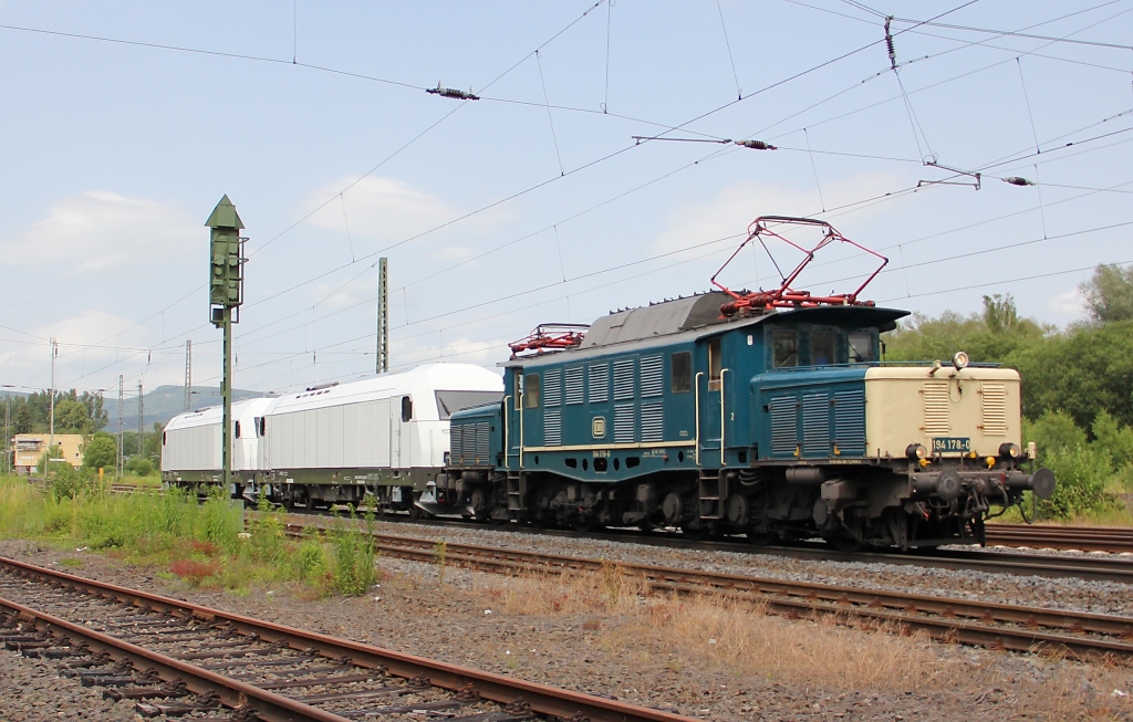 Zum 3000. Bild werf ich mal ein kleines Schmankerl dazwischen. Am 30.06.2012 kam (endlich mal fotografierbar) die 194 178-0 durch Eschwege West. Am Haken hatte sie zwei blanko weiße 2016er. Gefahren ist dieses Gespann als PbZ 93762 von BKP nach MIH.